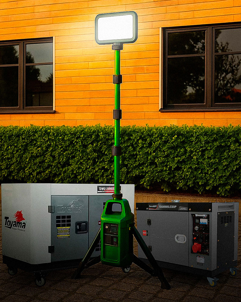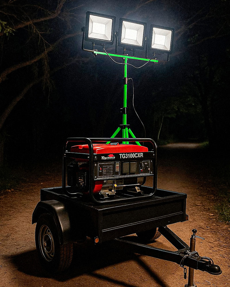 Adaptadas à sua necessidade, nossos geradores e torres de iluminação elétricas, permitem que uma única fonte de energia alimente múltiplas torres e estações de energia e outros equipamentos elétricos.